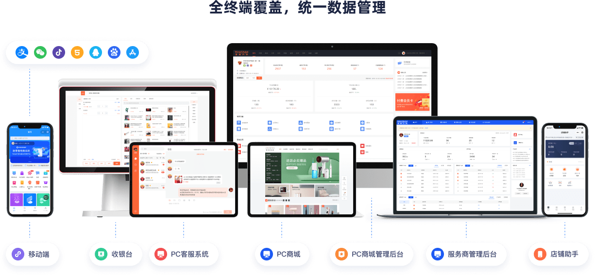 连接线上线下一体化管理,提高商城业绩。
