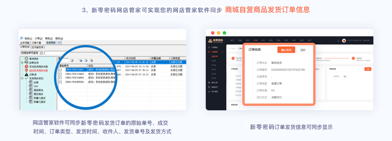 实现网店管家软件后台轻松对接,无需复杂的导入过程,进行简单配置即可同步自营商品库存信息、订单情况以及发货订单信息。