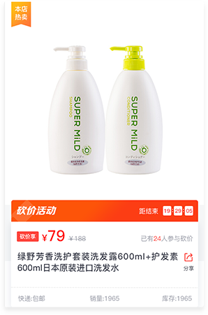 用户为达成目标价格不断自发分享产品,好友在帮助砍价过程中接触活动,产生二次分享及三次分享,分享范围呈指数增长不断扩大。